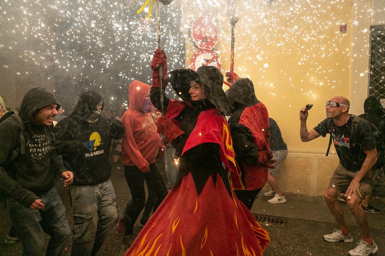 Las fiestas de Gràcia llegan a su fin y no podían terminar sin el tradicional correfoc! Hace mucho no los fotografiaba en la celebración mayor de este barrio y ayer recordé por qué: empiezan a las 10:45 de la noche, al final de casi una semana de jolgorio con mucho alcohol, desde una plaza plagada de terrazas con gente bebiendo y recorriendo calles estrechas llenas de turistas ansiosos de capturar cada detalle con sus teléfonos y unirse a la diversión pero sin saber mucho de qué va el tema. Una combinación de elementos que aunque no resta espectacularidad, hace todo más complicado… o tal vez yo elegí mal los lugares donde ponerme. También es primera vez en todos estos años que realmente me he quemado, a pesar de que siempre voy preparado y siguiendo los consejos de seguridad… pero esto no quita que me sigan fascinando y que quiera fotografiarlos de nuevo. Será en las Fiestas de La Mercè?
