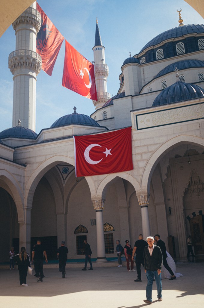 Si visitas la ciudad, es ideal quedarse cerca de la icónica Plaza Skanderbeg. Coronada por la estatua que honra a Gjergj Kastrioti, el héroe de la patria y figura principal de Albania junto con la Madre Teresa de Calcuta. Es el punto de partida para los tours guiados por la ciudad (totalmente recomendable hacer alguno) y durante los fines de semana hay mercadillos o algún evento cultural. En una esquina encontrarás la Mezquita Et’hem Bej, de gran importancia ya que fue de los pocos edificios religiosos que no fue destruído durante la era comunista. De gran valor patrimonial, es bastante pequeñita y para visitarla tienes que dejar una colaboración en la entrada además de entrar sin zapatos y respetando el código de vestimenta – te pueden gratuitamente dar pañuelos para cubrirte -. Tiene unos mosaicos preciosos pero no estarás más de 10 minutos dentro porque es diminuta… si tienes monedas o billetes pequeños, puede valer la pena. Por cierto, una de las cosas buenas es que los euros son ampliamente aceptados y el cambio es bastante fácil: 1 Euro = 100 Leks.